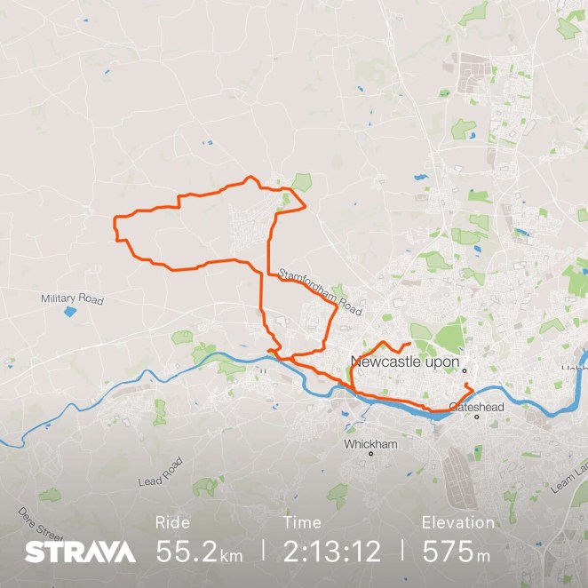 A mad dash down to Newburn, the warmth and refreshments now enticing us back, a through and off peddling a big gear and before we knew it we were back where we started.