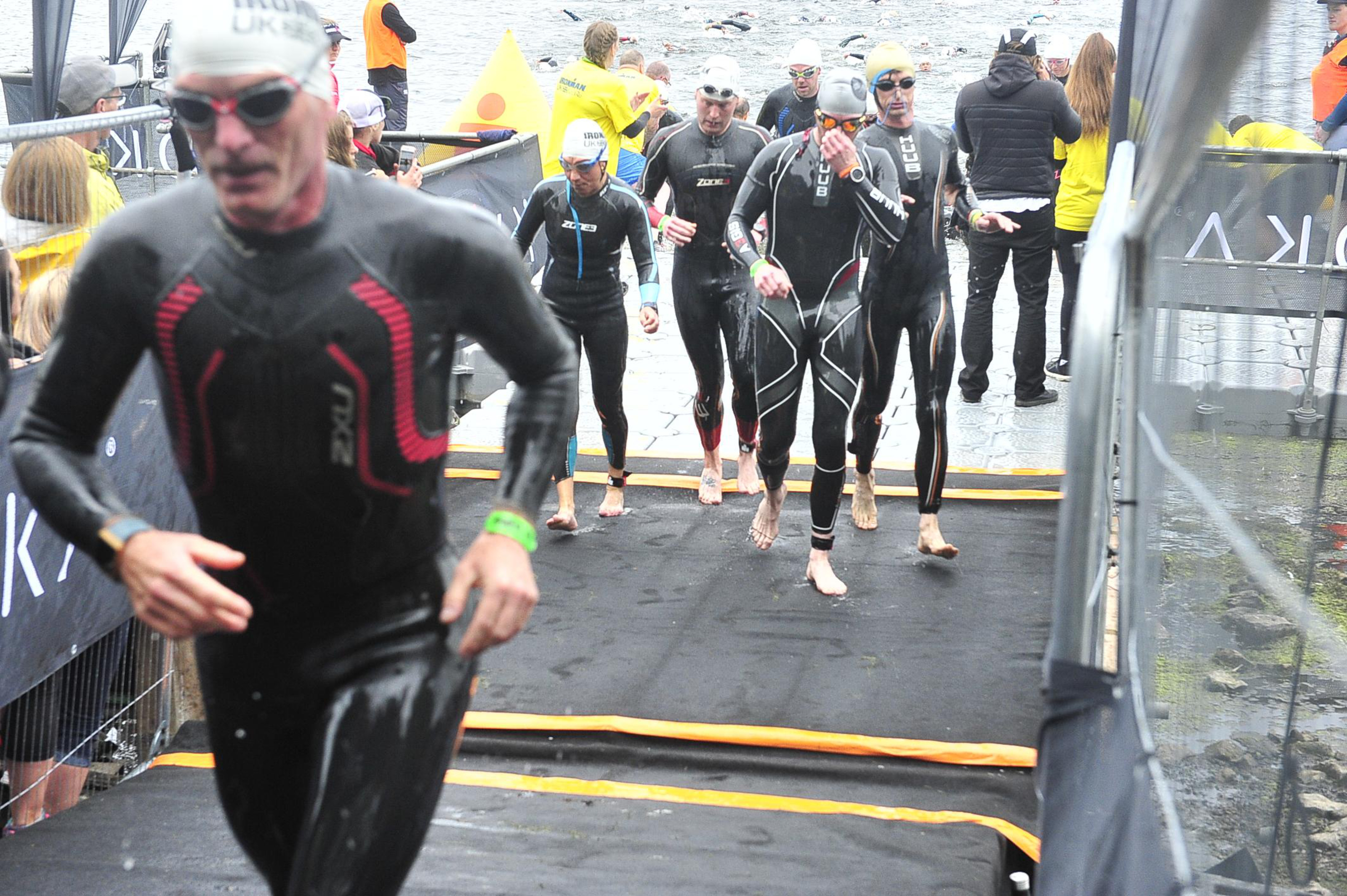 Sunday 2:45am – The alarm goes off! We drive into Bolton and catch the shuttle bus down to the start (brilliant service). A quick trip into T1 to inflate tires and put my nutrition on the bike before waiting in the inevitable porta-loo queue! That all sorted and it is into my wet suit. Ironman UK operates a rolling start (with the military division getting a head start and starting in the water). Naturally I lined up right at the front in the sub 55 minute area. A few of the guys next to me were formulating a plan to work together, targeting ~48 minutes. I knew this would be a bit fast for me, but decided to try and hold their feet for the start anyway.