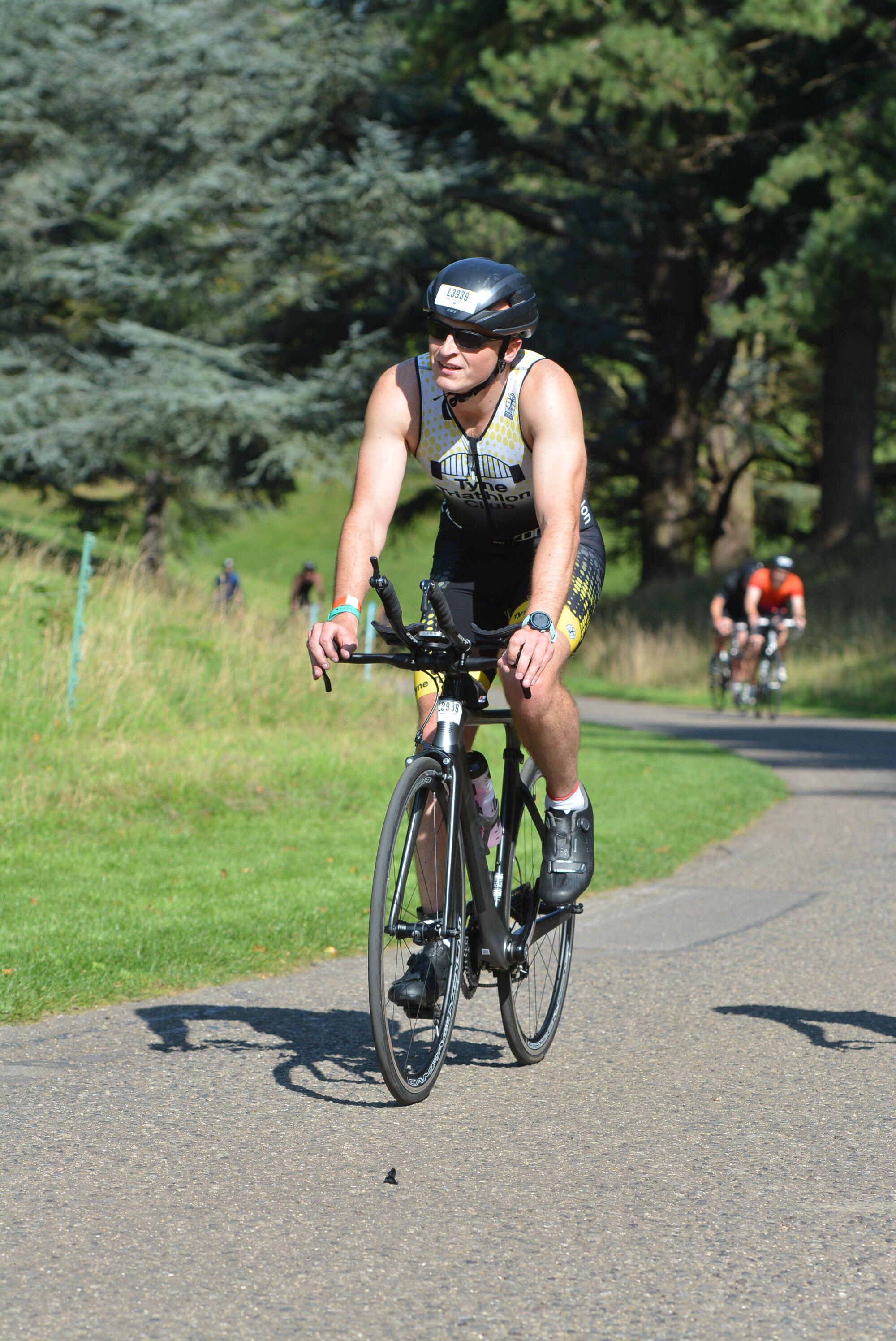 Then the run to T1, a 5 minute hill climb to warm my legs up before the bike section. Wetsuit off, catch a 30 second recovery, helmet on, bike un-racked and time for my favourite bit! The course is 3 laps of a rapid descent with a steep climb back up to transition, my favourite kind of riding! I make the classic mistake of going all-out, dropping my chain on lap 2 (a twisted rear mech that’s since been replaced) and pulling back into T2 in 38 minutes. Fantastic fun, full-gas on the climbs, getting into the aero bars on the descents, the way cycling is meant to be!